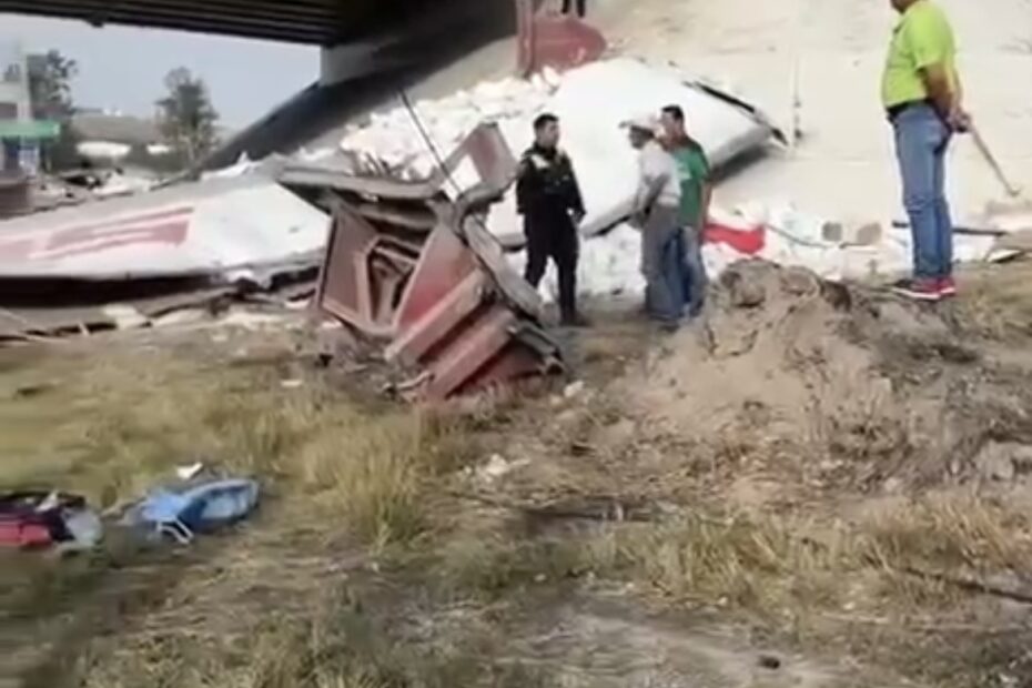 Sin embargo, justo antes de llegar al próximo retorno, una de las llantas del tractocamión supuestamente tronó, lo que ocasionó que el conductor perdiera el control y sacara del camino a la camioneta hasta caer sobre el Ecobulevar.