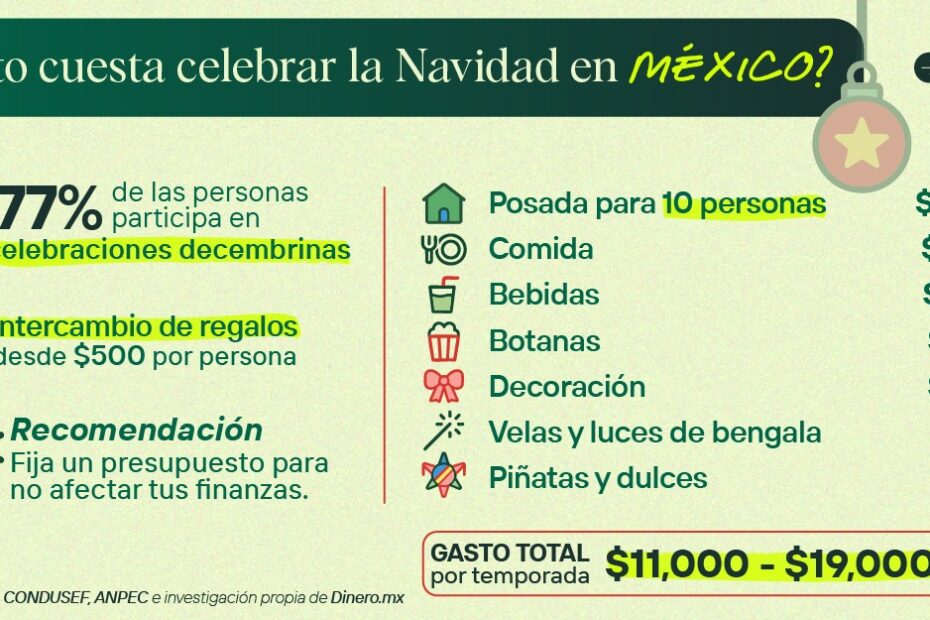 Por último, la ANPEC también estima que un intercambio de regalos típico parte desde $500 pesos por obsequio. Ante este panorama, Alejandro Sena, director general de Dinero.mx recomienda que: “antes de aceptar cualquier invitación o planear las celebraciones decembrinas, se establezca un presupuesto realista que permita disfrutar de la temporada sin comprometer la estabilidad financiera. Priorizar gastos, comparar precios y evitar compras impulsivas son acciones clave para celebrar responsablemente y comenzar el nuevo año con finanzas sanas”.