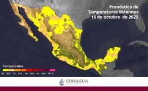 Temperaturas máximas de 30 a 35 °C: Baja California Sur, Sonora, Coahuila, Nuevo León, Tamaulipas, San Luis Potosí, Zacatecas, Jalisco, Colima, Michoacán, Morelos, Guerrero, Veracruz, Tabasco, Chiapas, Yucatán y Quintana Roo.