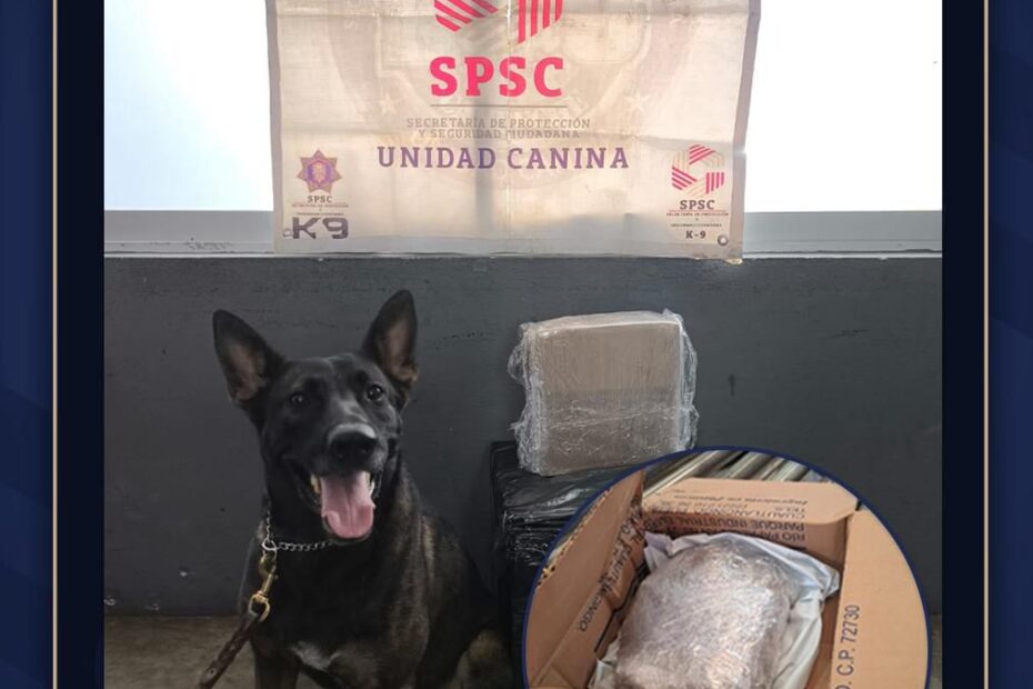 Durante la verificación, el binomio canino marcó de manera positiva un paquete. Al abrirlo, y en presencia del personal autorizado, se encontró material con características de posibles sustancias ilícitas.