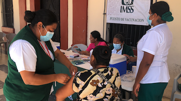 Personal del Ayuntamiento y de la Unidad Médica Familiar del IMSS número 2 de Champotón, trabajaron de manera coordinada para la atención a los demandantes de esta medida preventiva a favor de la ciudadanía.