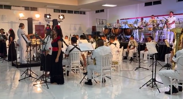 En Escárcega se presentó la Banda Sinfónica y el Mariachi de la Secretaría de Marina Armada de México que deleitó con melodías a los pobladores que se dieron cita, precisamente en una velada donde la autoridad y familias mostraron un lazo de hermandad.