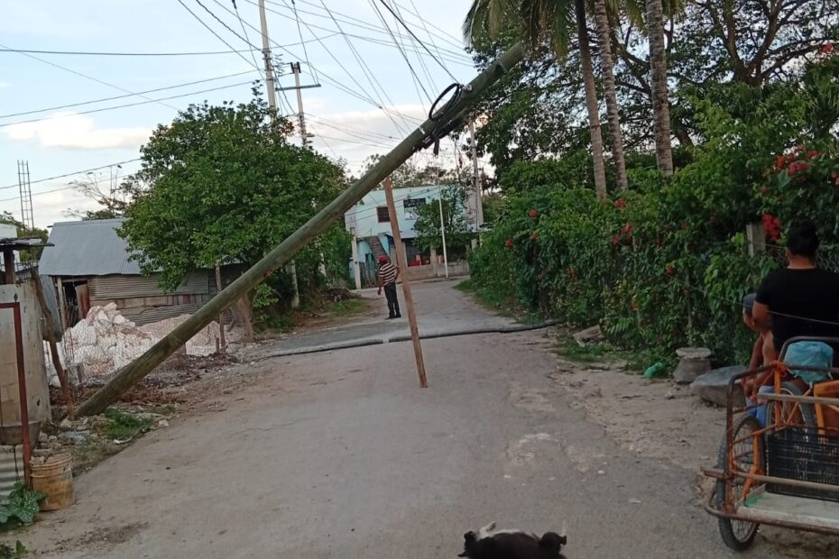 Al parecer por el paso del tiempo y algunos accidentes, un poste de telefonía terminó cayendo hacia la vía pública en la calle 47 entre 2 y la privada Fertimex, en Escárcega, por lo que de inmediato dieron aviso a Protección Civil y evitar un accidente mayor.
