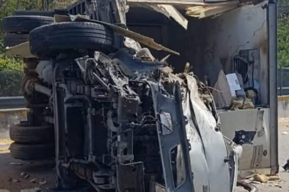 Gran parte de su carga quedó esparcida en el pavimento, lo que obligó al cierre total de la circulación en ambos sentidos por parte de las autoridades incluso personal de Caminos y Puentes Federales obligó a cerrar la autopista desde su ingreso en la ciudad capital.