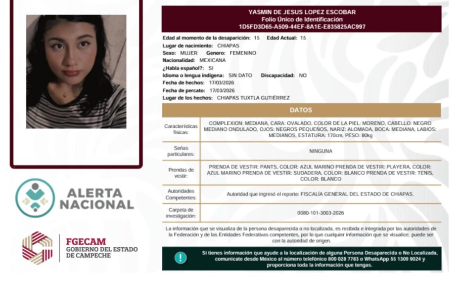 Campeche refuerza campaña en apoyo a la Alerta Nacional de Búsqueda.