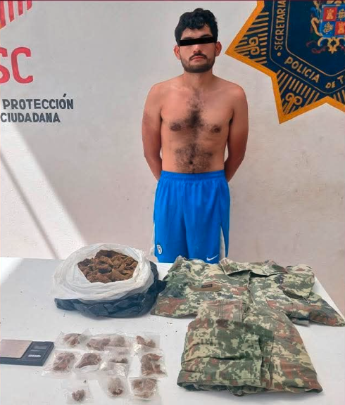 De acuerdo con el informe oficial, durante la intervención los agentes inspeccionaron a un masculino que portaba una bolsa en cuyo interior fueron localizados múltiples envoltorios con hierba verde con características propias de narcótico, además de una bolsa de mayor tamaño con la misma sustancia.
