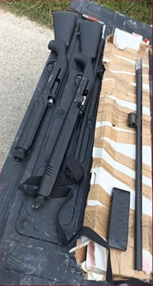 Durante estas acciones, identificaron un taxi con placas de Campeche y le marcaron el alto para su revisión, al entrevistarse con los ocupantes y proceder a la inspección, se localizó en el interior del vehículo una caja de cartón envuelta con cinta adhesiva, que resguardaba dos escopetas.