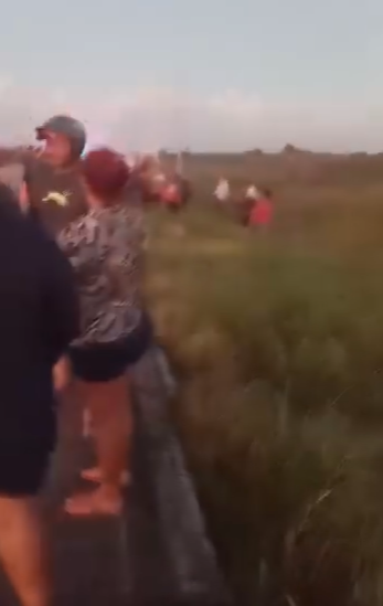 Elementos de la Guardia Nacional realizaron disparos al aire para evitar que un tráiler cargado de leche, fuera rapiñado después de sufrir un accidente en la carretera de Sabancuy a Carmen, y que decenas de personas ya habían llegado al sitio.