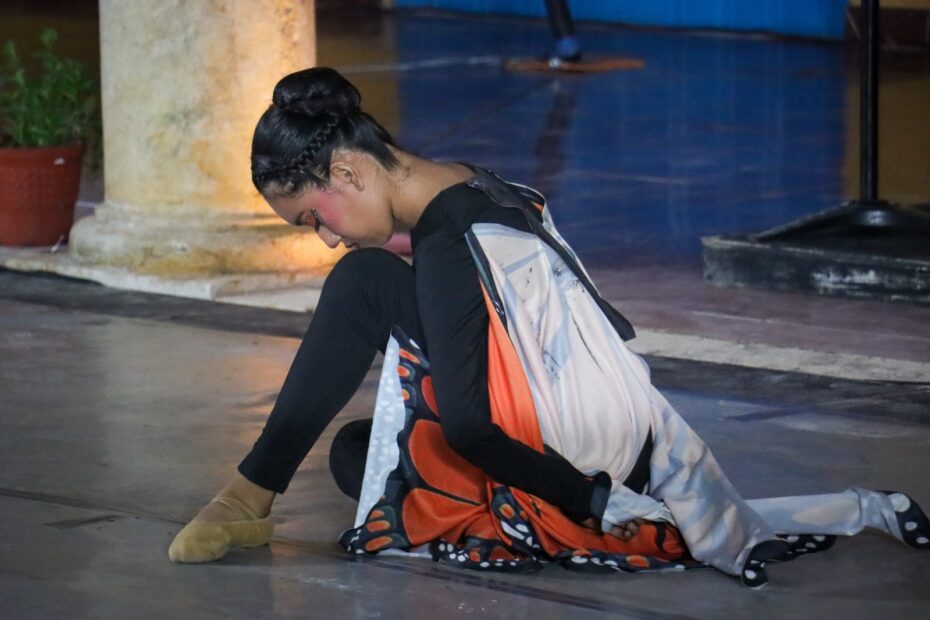 La mariposa monarca, símbolo poderoso de transformación y renacimiento espiritual, cobró vida a través una presentación multidisciplinaria titulada “Monarca”, con texto de Iris Moreno y la participación en la voz de Iris Moreno y Cecilia Montejo, además de la interpretación dancística de Heysell Noremi Maas Novelo, bajo la dirección de los maestros Mario de la Cruz Moo Reyes (Música) y la coreografía de Jenna Avilés (danza) y Eric Noj (interpretación del texto).