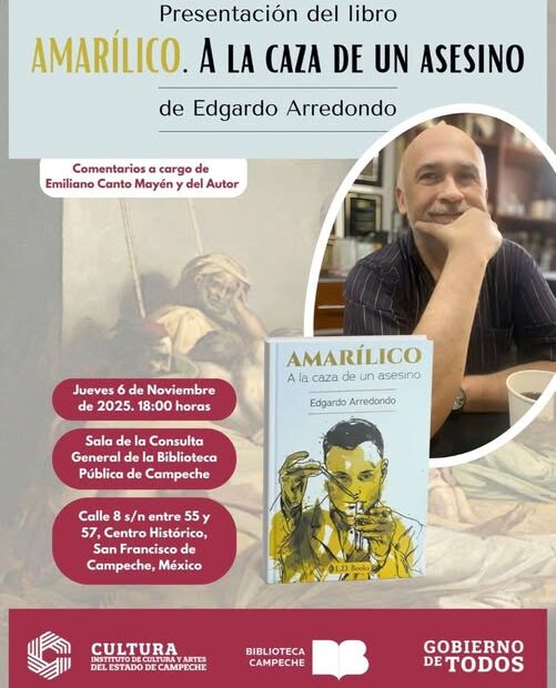 El Gobierno de Todos, a través del Instituto de Cultura y Artes del Estado de Campeche, invita a jóvenes y adultos a la presentación del libro “Amarílico. A la caza de un asesino”, de Edgardo Arredondo, que se llevará a cabo este jueves 6 de noviembre a las 18:00 horas en la Sala de Consulta General de la Biblioteca Pública Campeche.