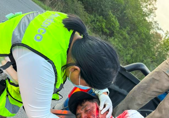 Al tardarse la unidad en llegar y la pérdida de sangre, una camioneta particular fue utilizada para trasladarlo al hospital de Champotón pero en el trayecto fue interceptado por la ambulancia del Sistema de Atención Médica de Urgencias, quienes lo abordaron y llevaron al hospital.