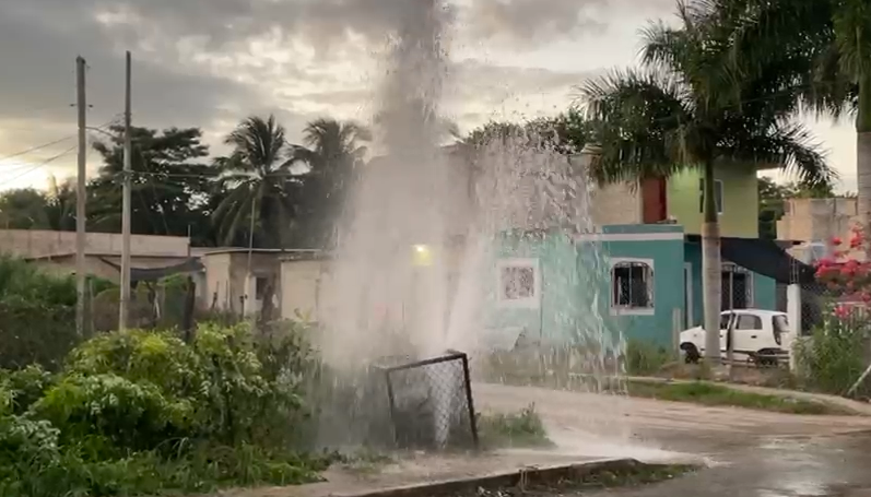 Una enorme fuga de agua dejó sin servicio a la cabecera municipal de Champotón, ya que al parecer el material viejo cedió ante la presión del líquido, generando que se suspendiera el suministro para que inicien los trabajos de reparación de esta toma.