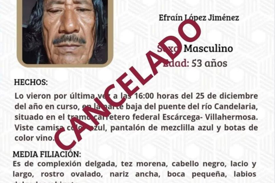 A casi una semana de haber desaparecido, fue localizado flotando en el río cerca del puente Candelaria, el cuerpo de quien en vida llevará el nombre de Efraín López Jiménez, de 53 años de edad, y que era trabajador del rancho “San Fernando”, ubicado en la carretera federal Villahermosa a Escárcega a la altura del kilómetro 212, en la región de Aguacatal, municipio de Carmen.