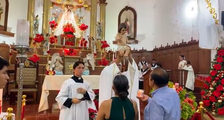 Los champotoneros católicos de esta manera recibieron la Navidad, asistiendo a la parroquia que se mantuvo abierta en espera precisamente para recibir a las familias.
