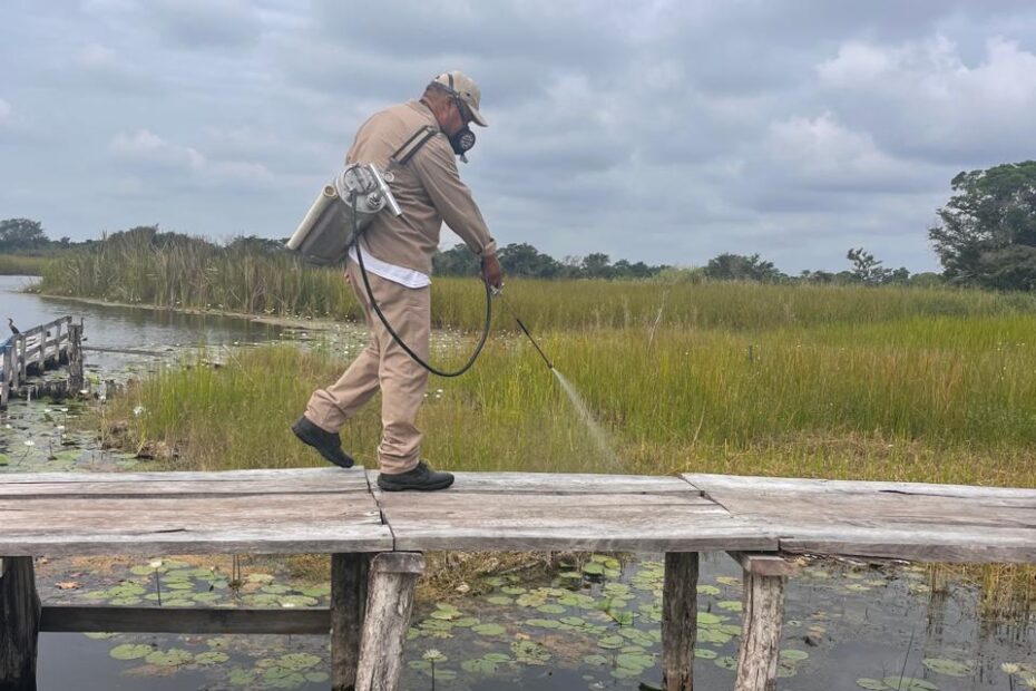 Precisamente el equipo de vectores del distrito de salud para el Bienestar número 2 fue el que realizó el rociado residual en distintas zonas de Candelaria, trabajando en Pedro Baranda y La Tigra, atendiendo espacios públicos, sistemas acuáticos y refugios naturales para prevenir el dengue, zika y chikungunya.