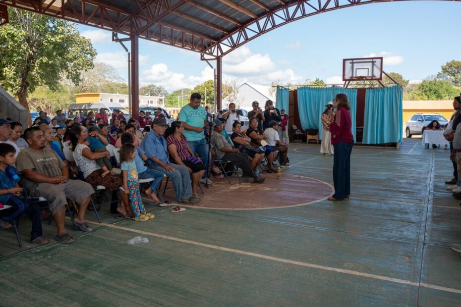 La secretaria de Gobierno, Liz Hernández Romero, encabezó la Caravana por el Bienestar del DIF Champotón presidido por Luis Enrique Santini Ruibal, realizada en la cancha techada de la comunidad de Kesté.