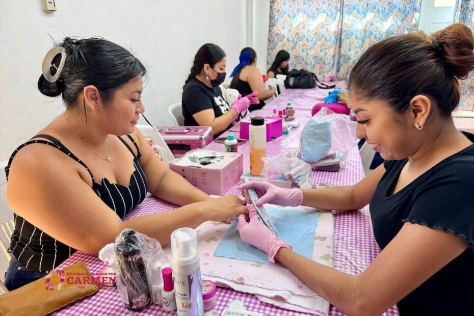 Con el objetivo de fomentar el autoempleo y fortalecer la economía familiar, el Sistema DIF Carmen lleva a cabo el taller de Aplicación y Diseño de Uñas Acrílicas en el Centro de Desarrollo Comunitario (CDC) módulo del Chechén.