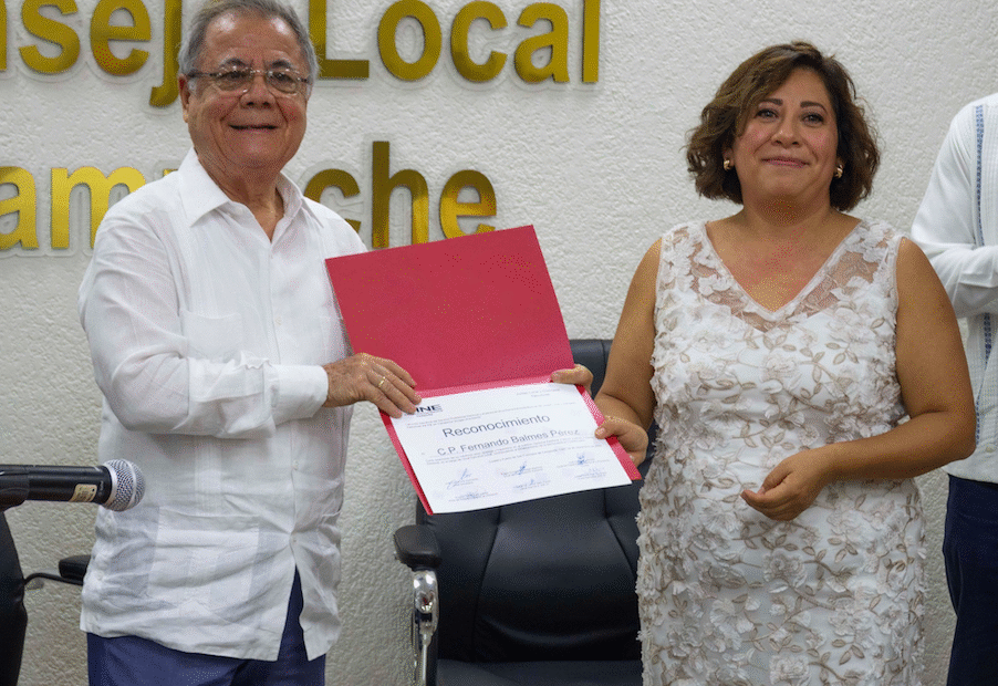 Tras 35 años laborales en el Instituto Nacional Electoral y otrora Instituto Federal Electoral, como premio y recuerdo de la vida que vino acompañada de constante preparación profesional y entregada al cultivo de la democracia en el sureste mexicano, el Vocal Ejecutivo de la Junta Local Ejecutiva en Campeche, Fernando Balmes Pérez con motivo a su jubilación recibió un reconocimiento de las y los compañeros de la institución al tiempo que dedicó al trabajo.