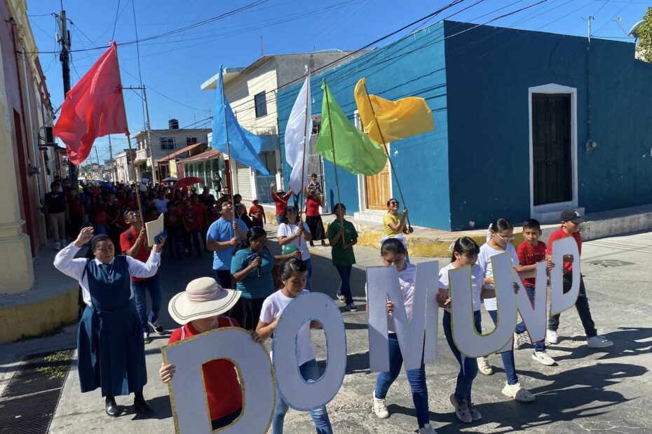 En Champotón, los grupos apostólicos y feligresía, participaron en la marcha para celebrar el Domingo Mundial de Misiones, denominado Domund 2025, donde catequistas se unieron a los festejos por las principales calles de la cabecera municipal.