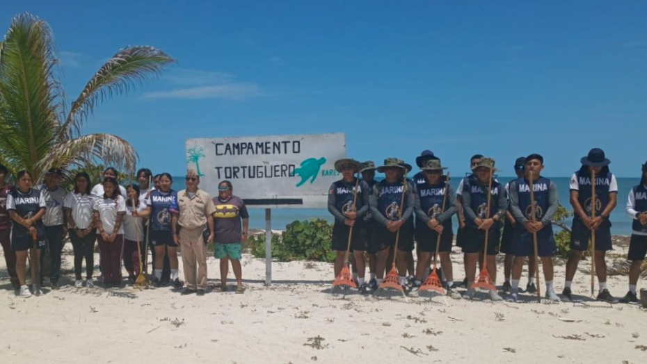 La Secretaría de Marina, a través de la Armada de México, por conducto del Sector Naval de Champotón, informa que en días pasados, personal naval llevó a cabo limpieza de playa, en el Campo Tortuguero Quelonios, en coordinación con estudiantes de la preparatoria CETIS 82.