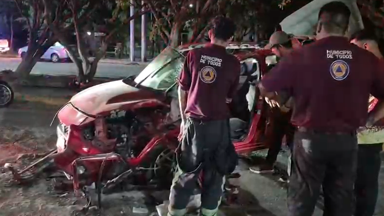 Añaden que el menor presuntamente conducía a exceso de velocidad pero al llegar a una curva pronunciada de la avenida, no pudo controlar la unidad y terminó montándose al camellón central y se impactara violentamente contra al menos tres árboles.