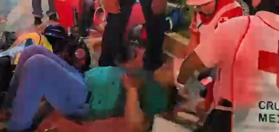 Paramédicos de la Cruz Roja Mexicana arribaron al sitio para brindarles atención prehospitalaria y, posteriormente, trasladarlos a un hospital para su valoración médica, debido a los golpes que presentaban.
