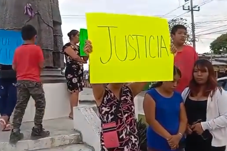 Familiares de la persona que perdió la vida de manos de un policía municipal, se manifestaron en el monumento a la mujer campechana en la ciudad de Xpujil, en Calakmul, alegado que el uniformado debió controlar la situación y no quitarle la vida.