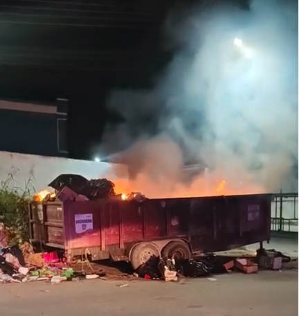 Sujetos que no fueron identificados le prendieron fuego a un contenedor de basura que se ubica a un costado del mercado principal, ocasionando la movilización del personal de Protección Civil de Escárcega, que lograron controlarlo.
