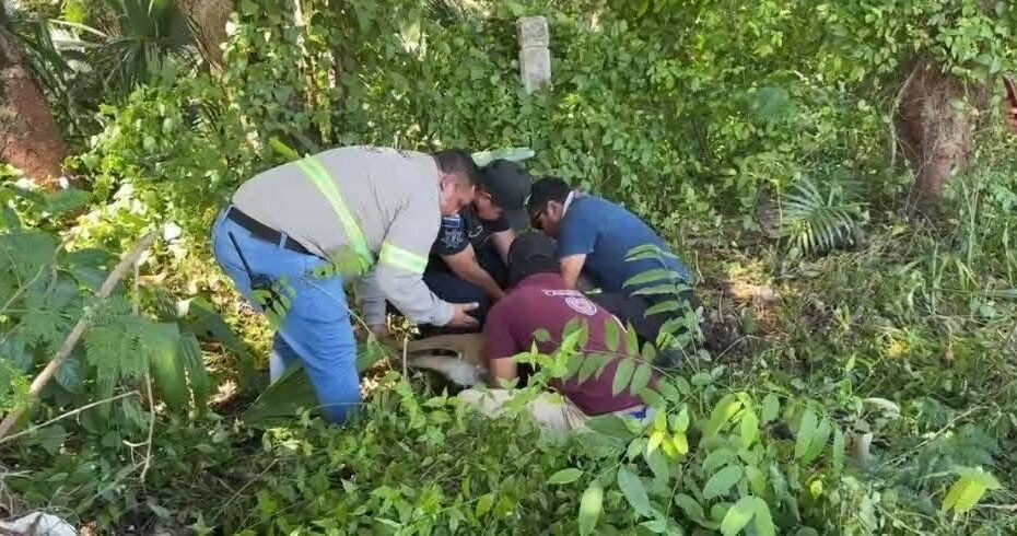Posteriormente, personal de Protección Civil arribó con la unidad número 19 y realizó labores de búsqueda y aseguramiento del animal dentro del área de monte, llevando a cabo las maniobras necesarias para resguardarlo sin poner en riesgo su integridad ni la de los rescatistas.