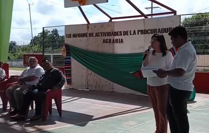 La cancha de usos múltiples de la Junta Municipal de División del Norte, fue el escenario donde la representante estatal de la Procuraduría Agraria, María Margarita Placido Rivera, rindió su primer informe de labores al frente de la dependencia.