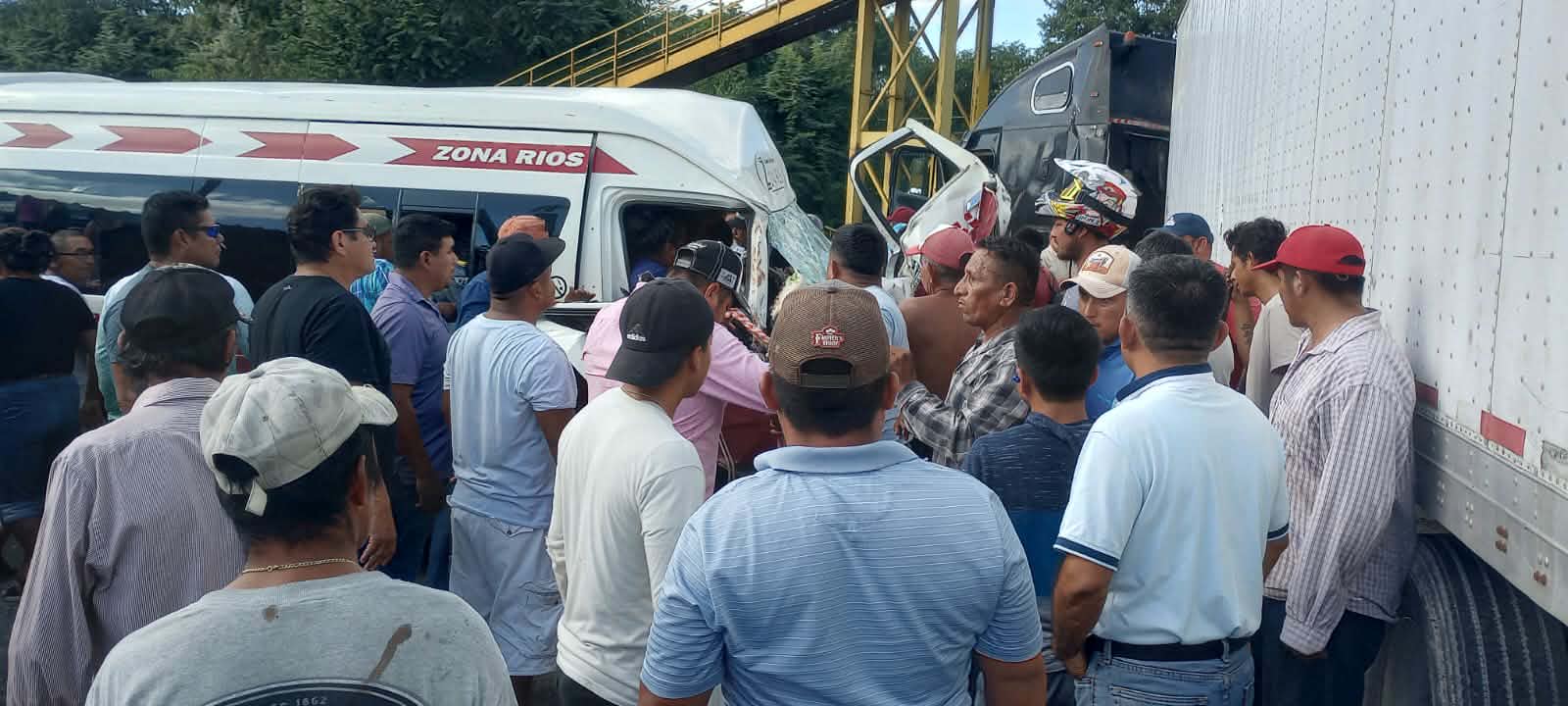 Al menos 13 personas resultaron con lesiones, entre ellas menores de edad, luego de impactarse una van de pasajeros contra un tráiler que realizaba maniobras en la carretera de Escárcega a Chetumal, por lo que fue necesario el uso de cuatro ambulancias para el traslado a un hospital.