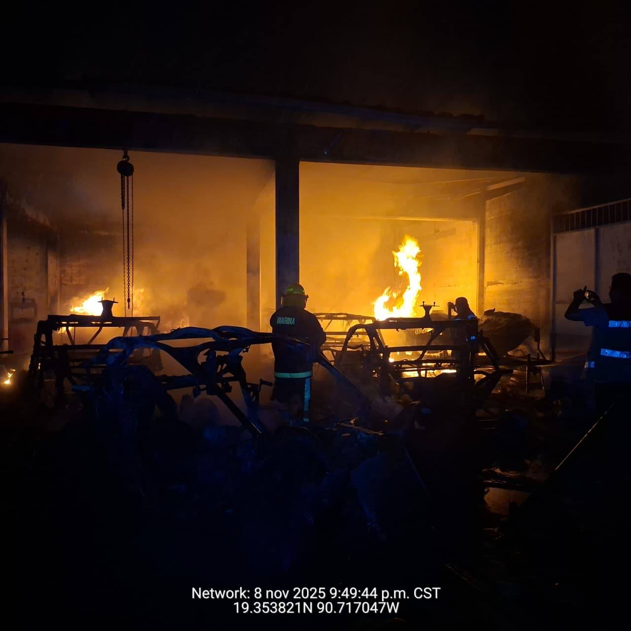 Una aparente falla eléctrica provocó el incendio de una bodega ubicada en la colonia Concepción Durán de Champotón, que presuntamente es propiedad de la familia Villacís, familiares del fiscal general del Estado, Jackson Villacís Rosado, aunque vecinos refieren que sujetos en moto fueron los responsables.