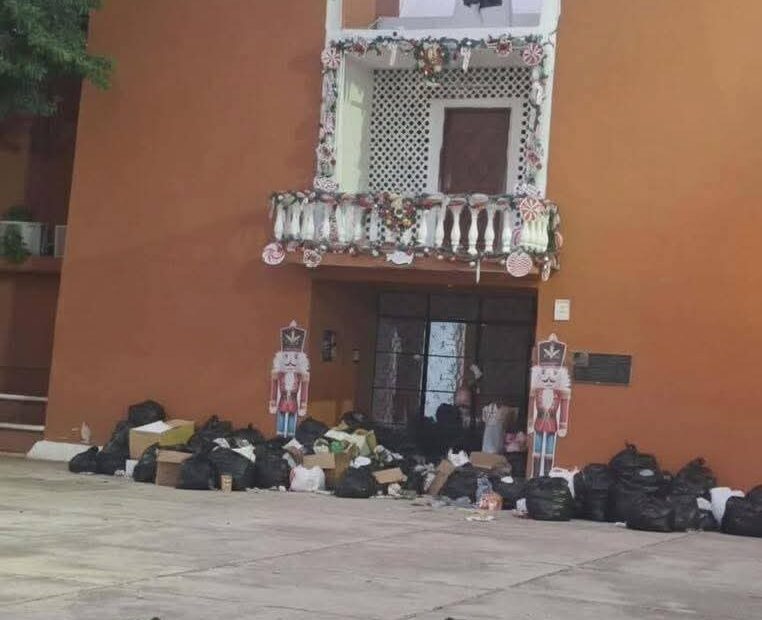 En Hecelchakán, el malestar ciudadano llegó a su máxima tolerancia y debido a que el servicio de recolección de basura es intermitente o de plano no llega a las colonias, vecinos de diversas colonias llegaron con bolsas de desperdicios y las colocaron en las afueras del Palacio Municipal.