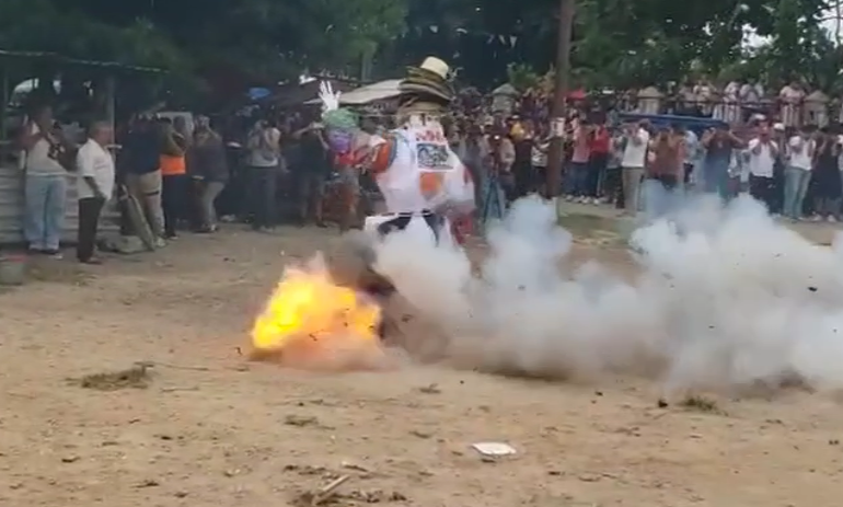 Y de acuerdo a las creencias, la figura es quemada en agradecimiento por haber “protegido” a la comunidad durante la antigua epidemia de viruela negra, es así como utilizan la pólvora que estalla en medio del festejo.