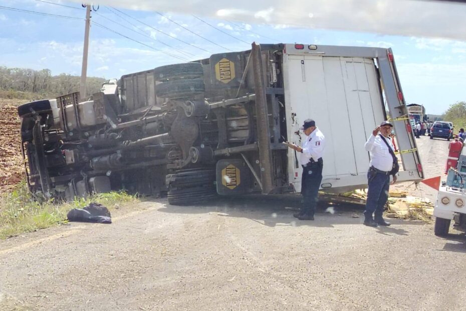 Una persona perdió la vida al volcar el tráiler que conducía sobre la carretera de Campeche a Hopelchén, dejando toneladas de sandía regadas en la carretera, ademas de una rapiña de la fruta por parte de automovilistas que transitaban por la zona.