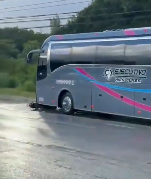 Tras el impacto, ambos ocupantes de la motocicleta salieron proyectados contra el pavimento; uno de ellos, presuntamente, fue alcanzado por las llantas del autobús.