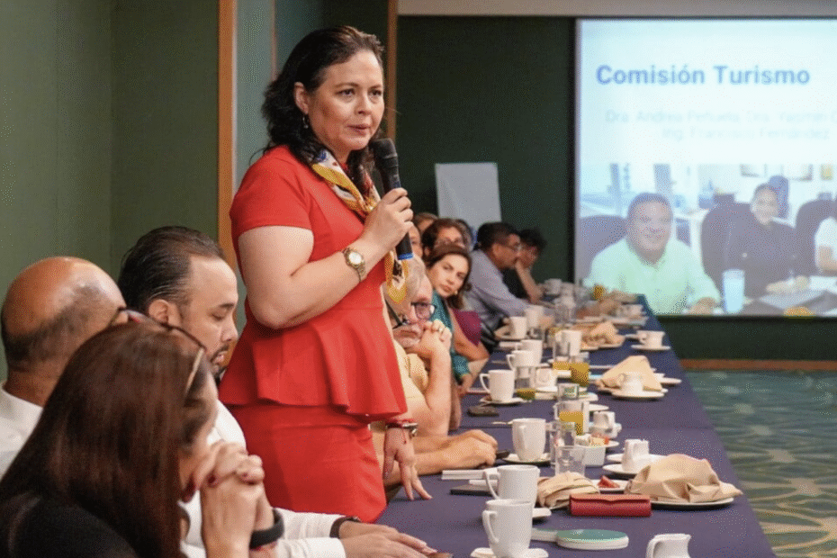 Andrea Peñuela fue presentada como coordinadora de dicha comisión, misma que busca construir una misión nacional e internacional, que permita aprovechar los beneficios del destino, para lo cual se pretende crear alianzas con el gobierno, academias e institución, convencidos de que juntos pueden coadyuvar a impulsar un turismo más competitivo y sustentable.