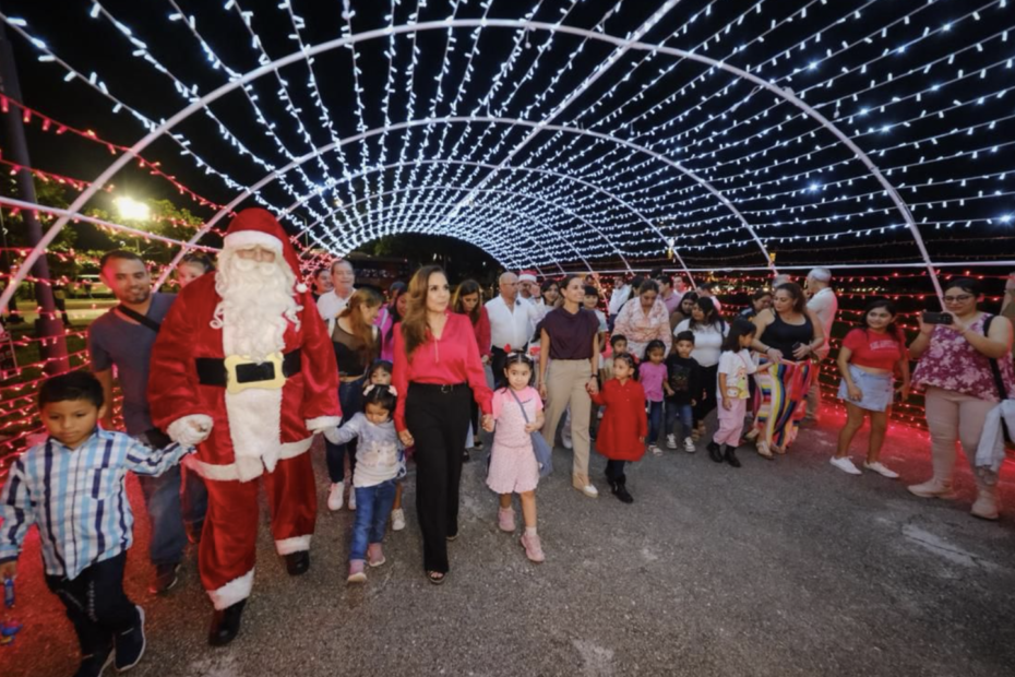 La gobernadora de Quintana Roo saludó a las niñas y niños que se reunieron en la Villa Navideña que se colocó a la altura del asta bandera. Se instaló un tunel de luces, escenario ideal para que habitantes y turistas puedan tomarse fotografías.