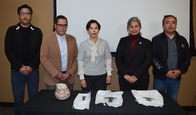 El pasado martes 3 de febrero, justamente en el 87 aniversario de la fundación del Instituto Nacional de Antropología e Historia (INAH), la titular del recinto recibió a la embajadora Alicia Kerber, cónsul titular del Consulado de México en San Diego y al Antropólogo Jaime Vélez Storey, director de Centro INAH en Baja California, quien recibió de manos de la diplomática cuatro piezas arqueológicas procedentes del norte y occidente de México.