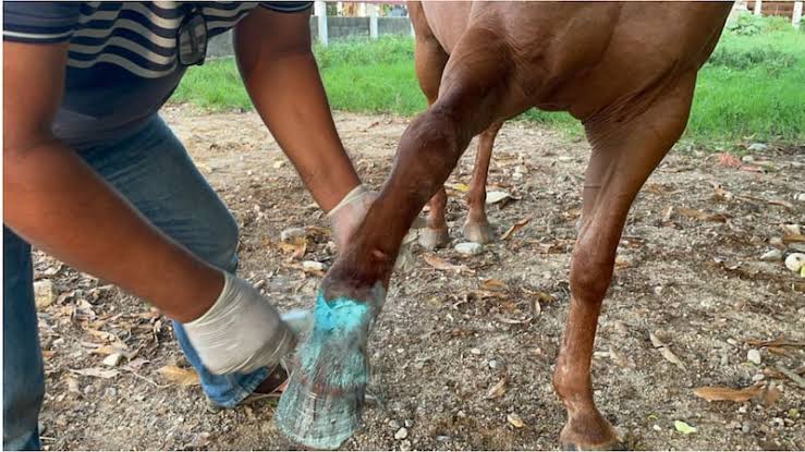 Luego extraen cientos de larvas del ombligo del becerro, mientras el animal se mueve abruptamente y chilla, colocan un producto veterinario larvicida llamado “Negasunt”, y después un cicatrizante. El proceso se repite de tres a cuatro veces por semana.