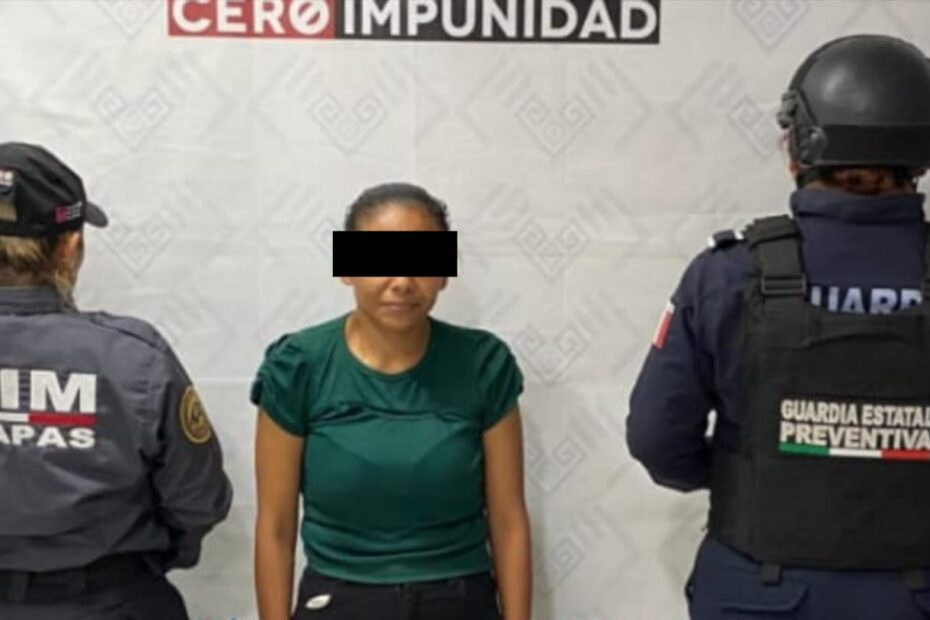 Elementos de la Agencia de Investigación e Inteligencia Ministerial y de la Guardia Estatal Preventiva cumplimentaron un mandamiento judicial en contra de Brenda “N”, como presunta responsable de pederastia, por hechos ocurridos en octubre de 2025, en el ejido Faja de Oro de Cacahoatán.