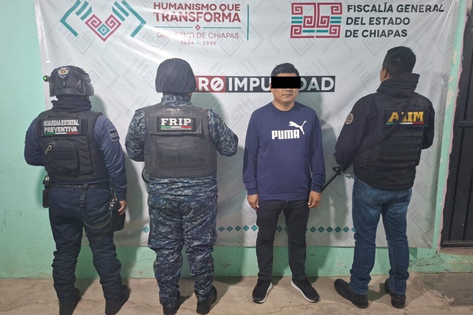 La Fiscalía General del Estado y la Secretaría de Seguridad del Pueblo ejecutaron un mandamiento judicial en contra de Daniel “N”, como presunto responsable del delito de violencia familiar, cometido en agravio de una mujer de identidad reservada, por hechos ocurridos el 29 de septiembre de 2024, en el municipio de Bochil.