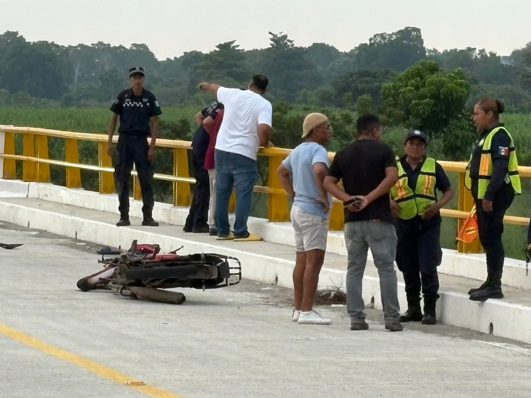 De acuerdo con los reportes, el conductor de una motocicleta presuntamente circulaba a exceso de velocidad cuándo chocó contra el muro de contención del puente y salió disparado v hacia la corriente del rió coatán.