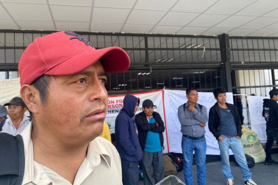 Más de 50 familias desplazadas del sector Santa Marta, en el municipio de Chenalhó, instalaron un plantón indefinido frente al Palacio de Gobierno para exigir la atención directa del gobernador.