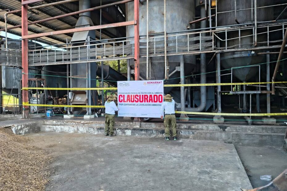 La PROFEPA en el Estado de Chiapas, clausura planta extractora de aceite de palma en Huehuetán.
