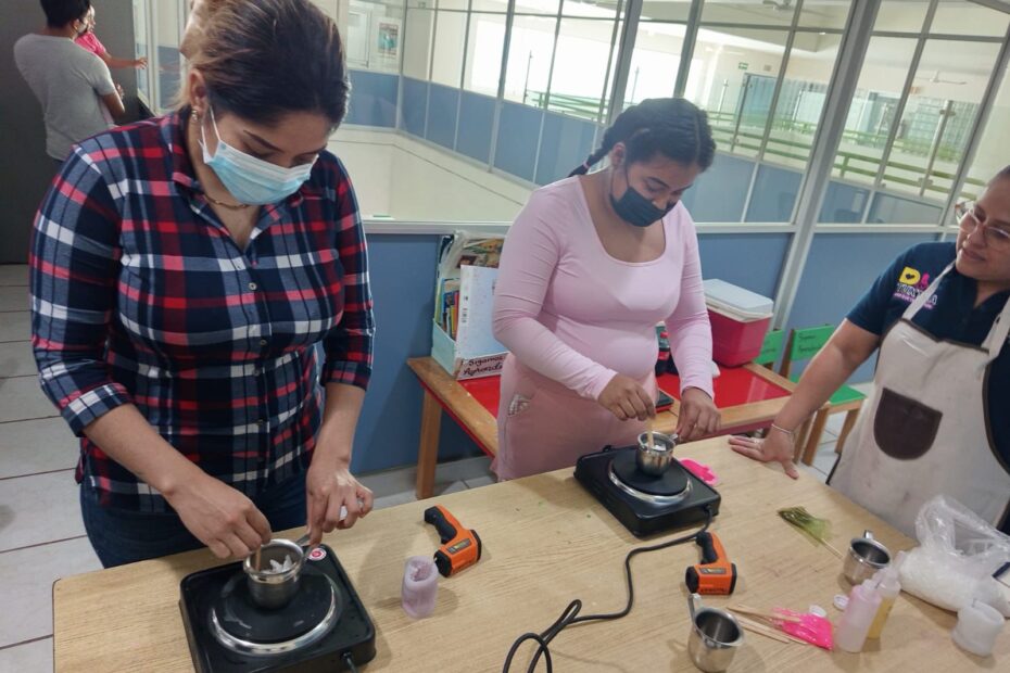 El Sistema DIF Tuxtla, a través de la Dirección de Atención a Grupos Vulnerables, llevó a cabo un curso de elaboración de velas aromáticas en el Hospital de Especialidades Pediátricas, dirigido a familiares de pacientes que se encuentran en espera de cirugía.