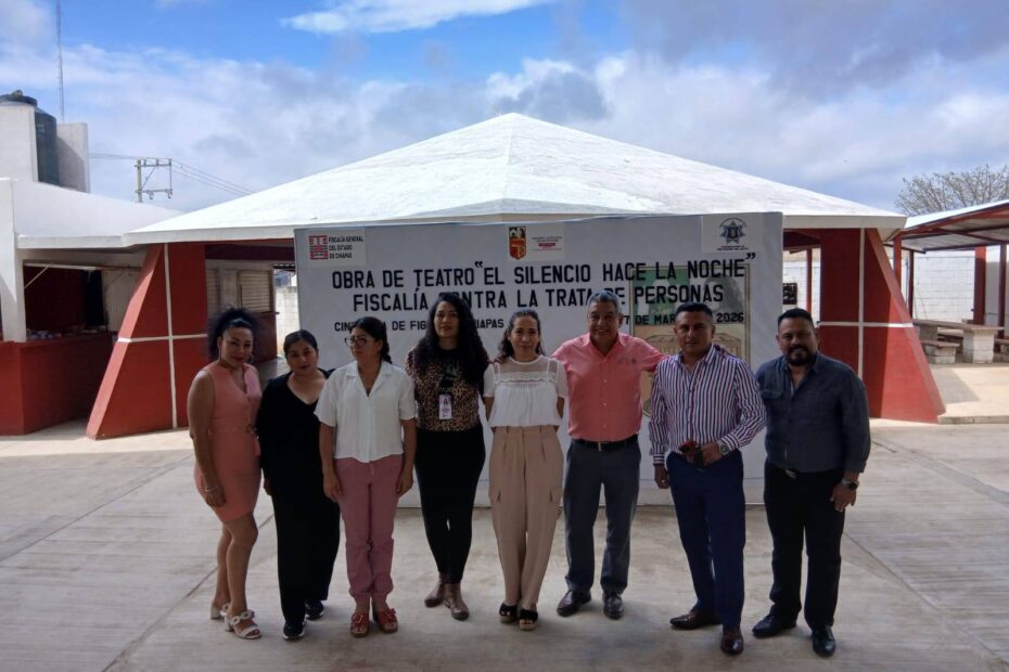 La Fiscalía General del Estado, a través de las fiscalías de Derechos Humanos y de Trata de Personas, en coordinación con el Ayuntamiento de Cintalapa, presentaron la obra de teatro “El silencio hace la noche”, como parte de las acciones de prevención del delito de trata de personas.