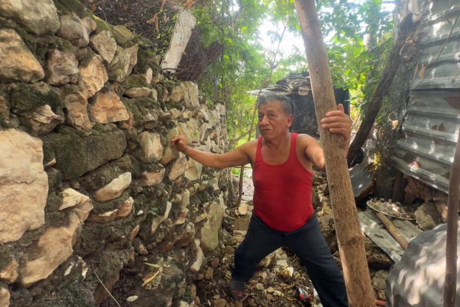 El señor Álvarez explicó que el arroyo baja con gran fuerza durante la temporada de lluvias, arrastrando piedras y agua directamente hacia su domicilio. Pese a sus intentos por construir una barda para proteger su casa, ha enfrentado conflictos con su vecino por el uso del espacio, ya que la corriente natural del agua atraviesa exactamente entre ambas propiedades.