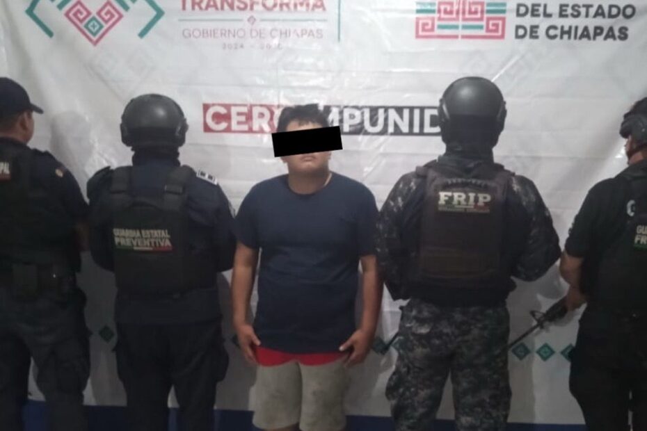 La Secretaría de Seguridad del Pueblo (SSP) a través de la Fuerza de Reacción Inmediata Pakal (FRIP), la Guardia Estatal Preventiva y la Guardia Estatal Fronteriza, en coordinación con la Fiscalía General del Estado (FGE) y la Secretaría de Seguridad y Protección Ciudadana (SSPC) del Gobierno Federal, detuvieron a un masculino presunto responsable del delito de violencia familiar, en el municipio de Tuxtla Chico.