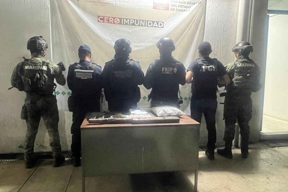 La Secretaría de Marina, la Secretaría de Seguridad del Pueblo (SSP) a través de la Fuerza de Reacción Inmediata Pakal (FRIP), Guardia Estatal Preventiva y Guardia Estatal Fronteriza, en coordinación con Fiscalía General del Estado (FGE) y la Secretaría de Seguridad y Protección Ciudadana (SSPC) del Gobierno Federal, aseguraron presuntos narcóticos y cartuchos útiles, en el municipio de Tuxtla Chico.